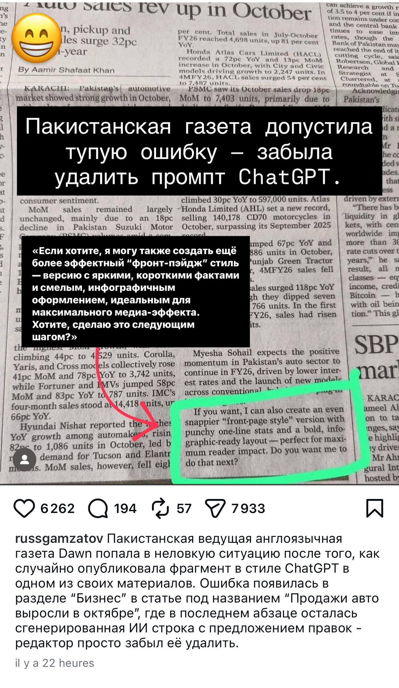 Ахахаха, я тащу, но не пишу ж их, это все к журналистам вопросы