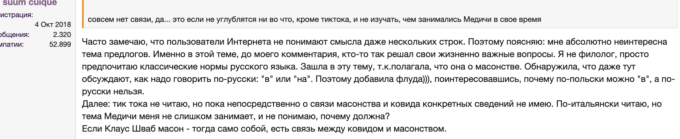 Суум, эта "связь"(из цитаты) неочевидна, потому что вовсе не "непосредственна". Клаус Шваб - масон, безо всяких там "если". Ну и в этом нет ничего сакрального и удивительного, учитывая его происхождение. Я бы скорее удивилась если б такие как Шваб, или еще кто-то вроде Куденхоф-Калерги, не имели бы вообще никаких связей с масонами. Но! Ходят слухи что Шваб не просто масон, но и подпольный иллюминат)) Более того, ходят слухи, что он даже не иллюминат, а люциферианин. Как и Юваль Ной Харари. Которому вовсе не нужно быть масоном, чтобы иметь отношение к ковиду "просвещению" и "улучшению" мира))