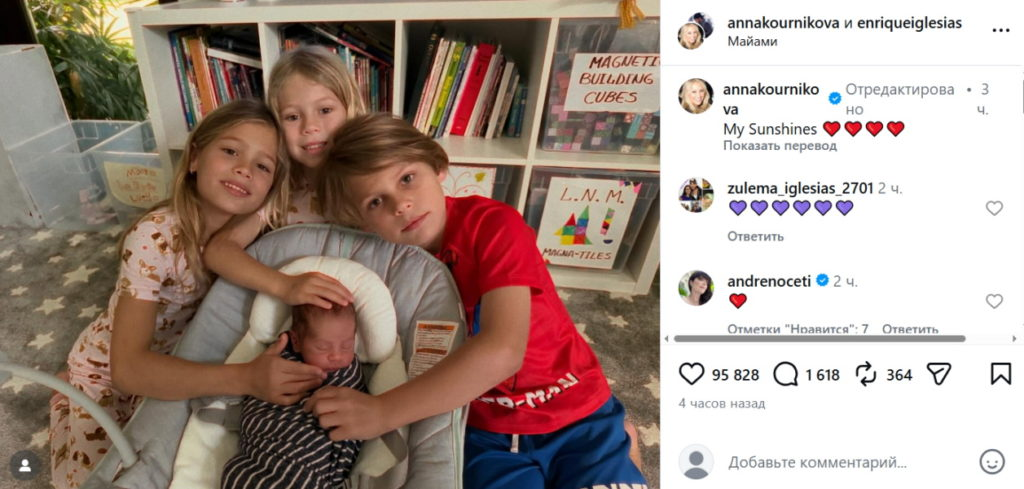 Все четверо детей А. Курниковой и Э. Иглесиаса