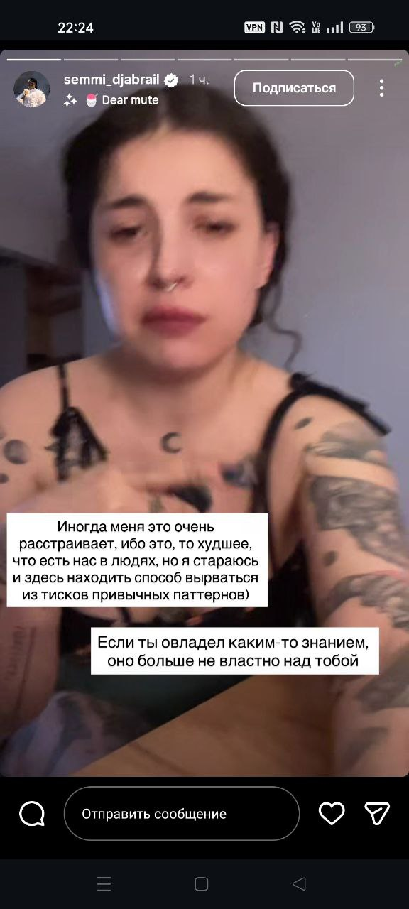 Покуда палата стухает, я ползу по 5 тому и просто не могу не делиться особенно прекрасными моментами. Это вот наша самая добрая, самая эмпатичная, самая милая и безобидная деватька с бантиками сидела на ступенях в проходном месте и читала книгу. Судя по фоткам, были уже приличные сумерки, и асфальт блестел от сырости, но любовь к науке застала ее посреди улицы и заставила сесть буквально под ноги прохожим. Мимо шла компания из 2 парней и одной пьяной девушки, которая начала пинать в сторону серминаза пластиковые оранжевые распорки, стоявшие на дороге, и хохотать. Парни раскланялись в извинениях за поведение подруги, а затем один из них вернулся с пакетом шоколадных трюфелей и подарил джабраилу, чтобы подмаслить и загладить вину. И что же наша хрупкая деватька? А она у нас такая крутая, что тут же развыебывалась, что готова пнуть эту девушку протезом за ее непростительное поведение, да так, чтобы уничтожить ее берцовую кость. Покарать тяжелым увечьем за ее непочтительное отношение! Воистину, редко встретишь такого доброго и понимающего человека.