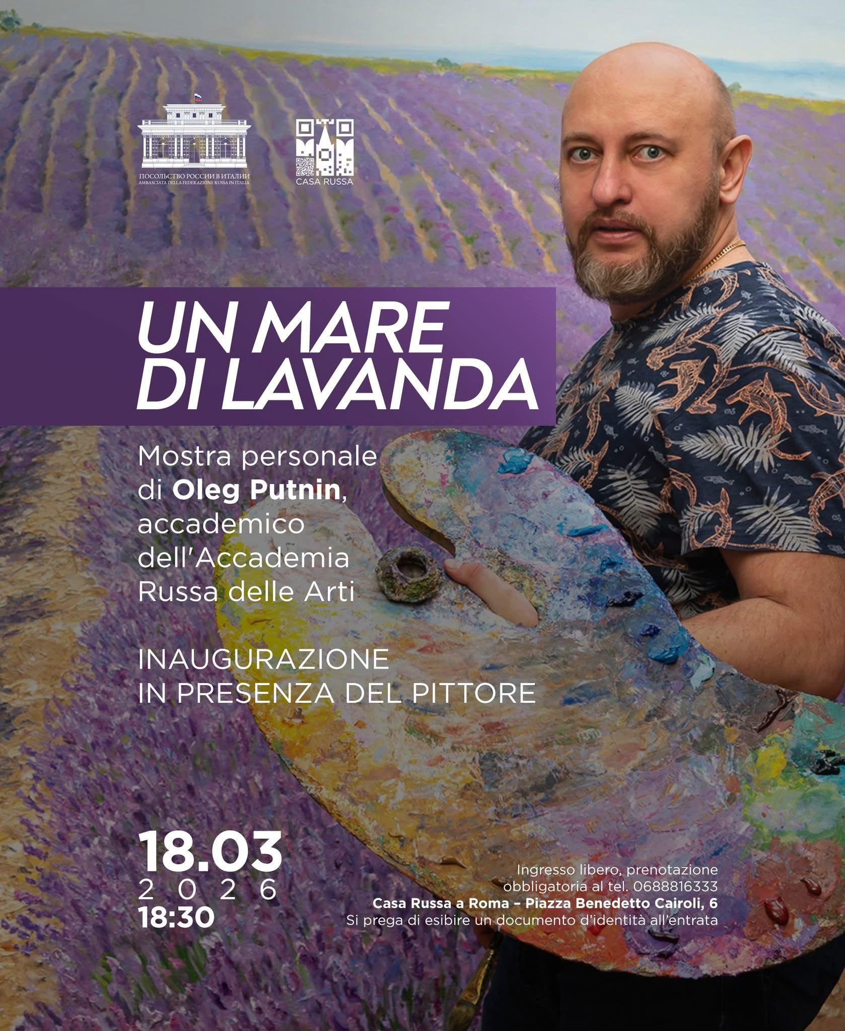 «В среду 18 марта в 18:30 в Русском доме в Риме состоится открытие выставки «Море лаванды» российского художника Олега Путинина, академика Российской академии художеств. Экспозиция вдохновлена красотой природы и историко-культурным пространством Крыма и Италии.