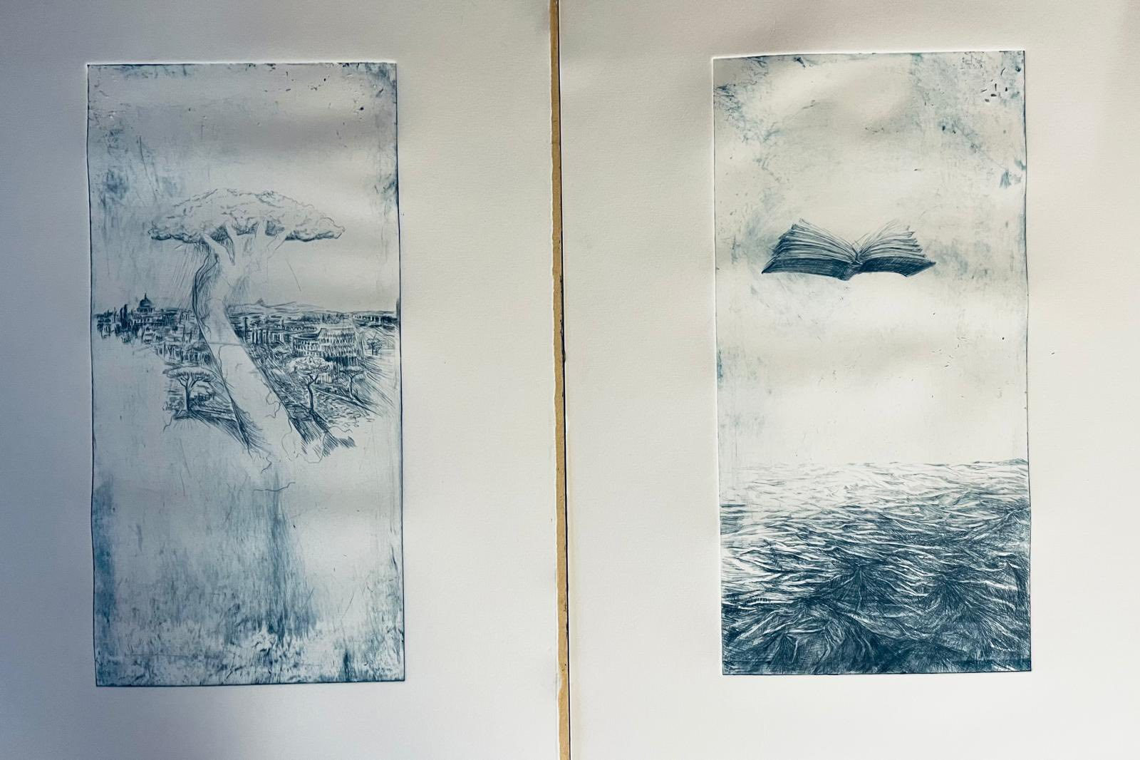 Пойду заканчивать монтаж — участвую в коллективной выставки венецианских художниц « Trame di Pace/Нити мира». Показываю триптих: большую работу и два офорта.