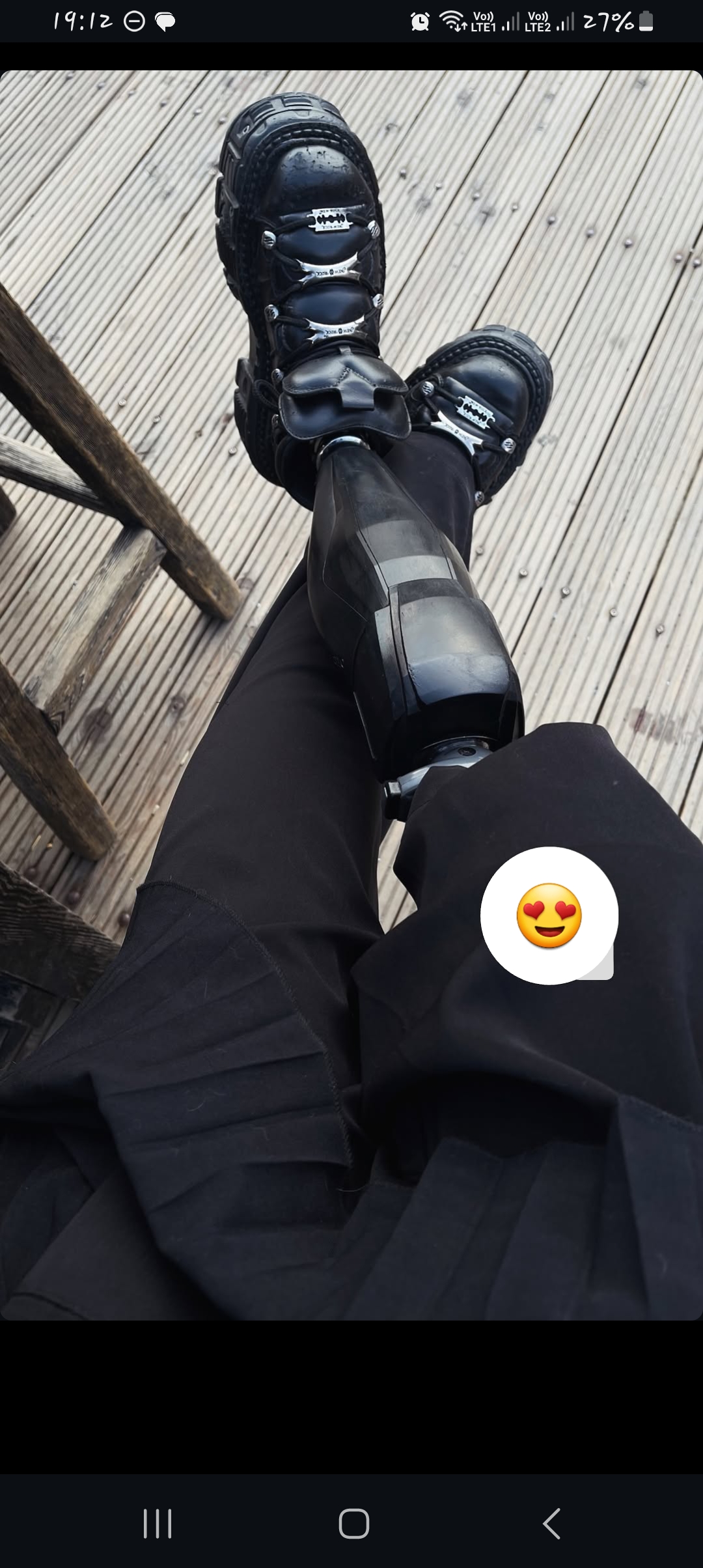 В интервью с тем парнем в Корее, где они на траве сидели, был крупный план ботинок - они все ободранные и убитые вблизи. Про один из них, который на протезе. она говорила, что кот любит его драть.